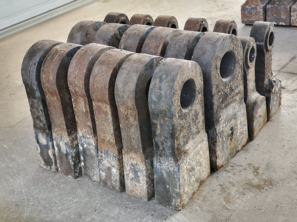 5、根據(jù)工況條件特殊配料,根據(jù)客戶來圖來樣定做各類異形破碎機錘頭;
